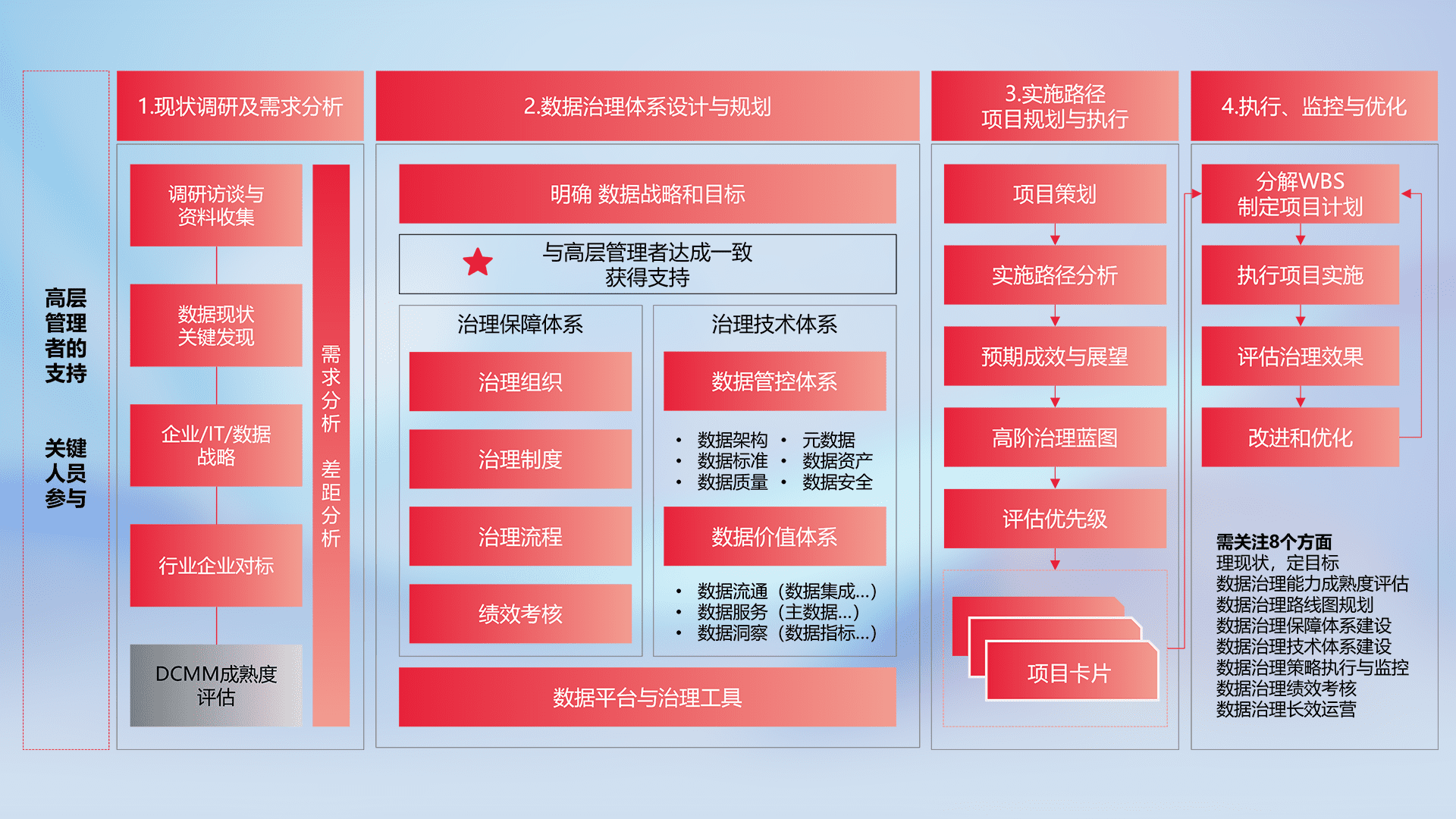 制定并执行统一的数据标准,,,,规范数据定义和格式,,,消除冗余和不一致性,,实现跨部门和跨系统的数据一致性,,,,为企业提供标准化的数据基础。。。